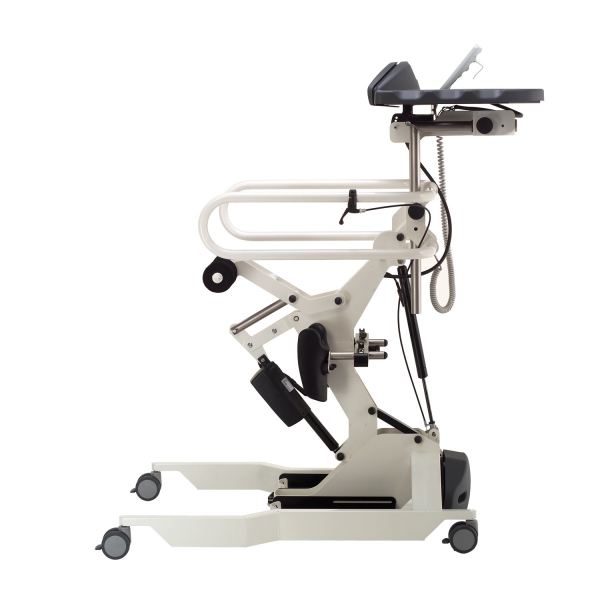Благодаря тренажеру пациент принимает вертикальное положение непосредственно из кресла-коляски, регулировка положения тела осуществляется пневматической пружиной.