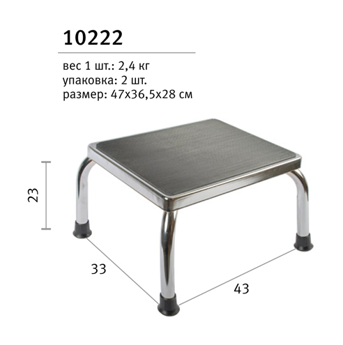 Удобная ступенька для ванны, выполнена из стали, с хромированным покрытием. Поверхность платформы и наконечники ножек имеют противоскользящее покрытие.