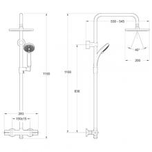- Квадратный верхний душ: 200 мм (расход воды 10 л/мин)