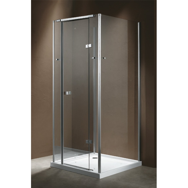 Душевой уголок с поддоном SLIM. Распашная дверь (возможность лево/правостороннего монтажа), цвет профиля – хром, цвет стекла – прозрачное, размер: 90x90x200 см.