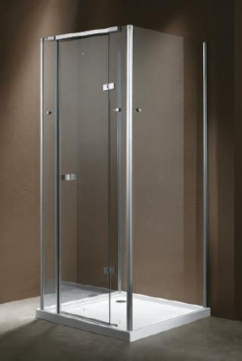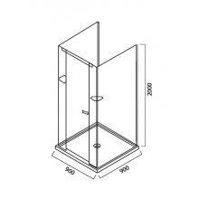 Душевой уголок с поддоном SLIM. Распашная дверь (возможность лево/правостороннего монтажа), цвет профиля – хром, цвет стекла – прозрачное, сифон в комплекте, размер: 90x90x200 см.