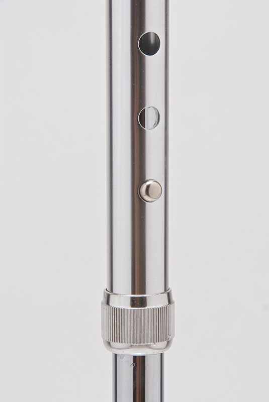 Высота трости регулируется надежным кнопочным фиксатором, через 2,5 см.