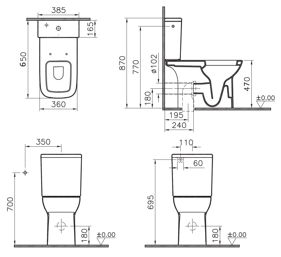 Выпуск унитаза: горизонтальный, вертикальный