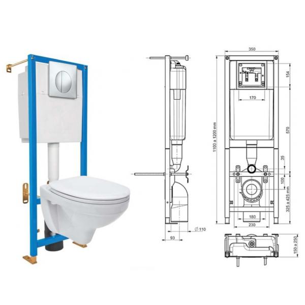 В комплекте хромированная кнопка слива, а так-же комплект креплений инсталляции к стене и к унитазу