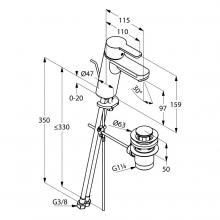 KLUDI LOGO NEO, артикул 372900575, однорычажный смеситель на умывальник xl dn 10, литой рычаг,монтаж на одно отверстие, класс расхода воды Z, аэратор eco м 24 х 1, керамический картридж с ограничителем горячей воды, донный клапан g 1 1/4, система быстрого монтажа,гибкая подводка g 3/8.