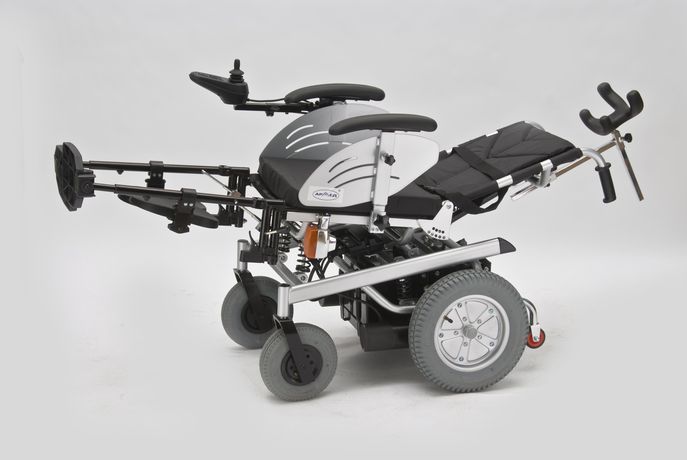 Кресло-коляска оснащено колесами, имеющими пневматические задние и передние цельнолитые шины.