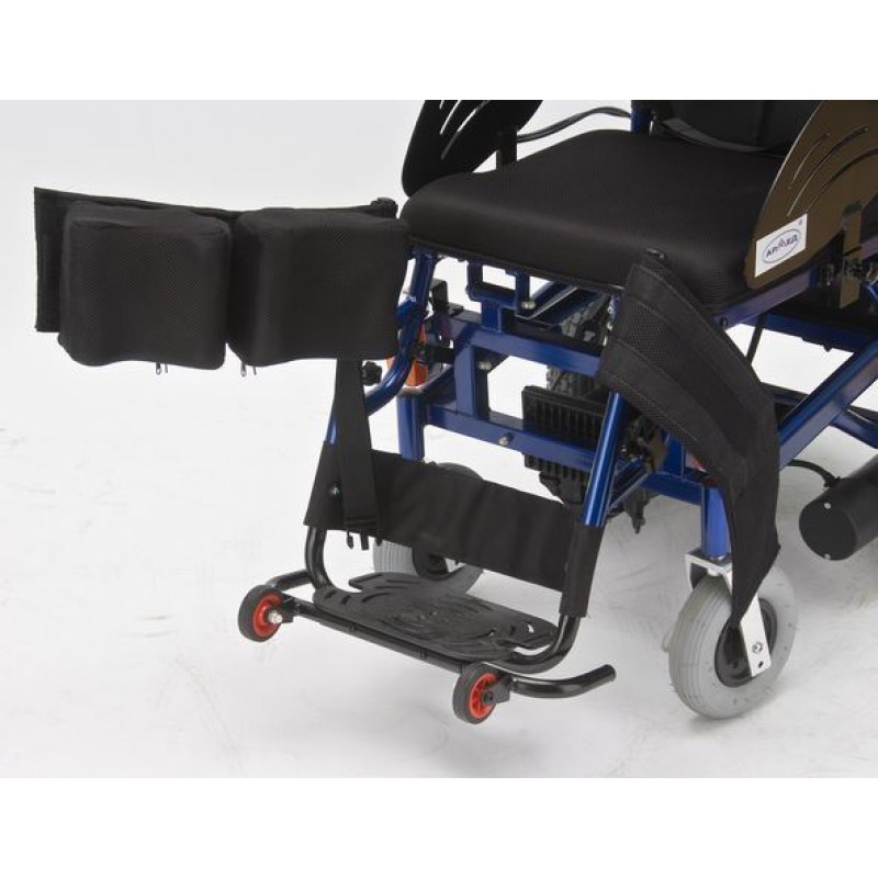 Кресло снабжено автоматической тормозной системой, включающейся при остановке и выключающейся при начале движения.