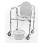 Туалетное кресло с санитарным отделением применяется для ухода за людьми с ограниченными физическими возможностями. Конструкция кресла выполнена из стального сплава. Пластиковые детали изготовлены из гигиенического ПВХ. Кресло оборудовано литыми колесами с тормозами (задние колеса).