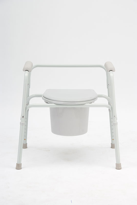 Подлокотники кресла-туалета прямые, несъемные с пластиковыми накладками.