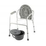 Туалетное кресло с санитарным отделением применяется для ухода за людьми с ограниченными физическими возможностями. Конструкция кресла выполнена из стального сплава с полимерным покрытием. Пластиковые детали изготовлены из гигиенического ПВХ. Ножки имеют наконечники против скольжения.
