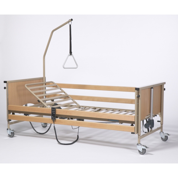 Кровать медицинская функциональная Vermeiren Luna Basic предназначена для обеспечения оптимального ухода за людьми с ограниченными возможностями, как в условиях стационара, так и в домашних условиях. Кровать практична и удобна в обращении. При помощи регулировок достигается наиболее комфортное положение пользователя для отдыха и сна. Ложе кровати четырехсекционное, регулируется по высоте. Три секции с электрическими регулировками угла наклона и одна фиксированная (тазовая). Боковые ограждения подвижные, легко поднимаются и опускаются. На кровати установлены надежные двигатели Датской фирмы Linak. Помимо регулировки угла наклона секций, имеется функция АнтиТренделенбург. Все регулировки электрической кровати осуществляются при помощи пульта управления с возможностью блокировки клавиш специальным магнитным ключом. Кровать оснащена четырьмя колесами с индивидуальными тормозами-фиксаторами. Все металлические детали кровати покрыты методом порошкового напыления, оцинкованы и хромированы.
