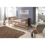Кровать Dali II имеет прочную конструкцию и выдерживает вес пользователя до 185 кг. Управление функциями кровати осуществляется пультом управления. Матрасная основа с металлическими ламелями — 4-х секционная с регулировкой высоты от 40 до 80 см см и наклоном ножной секции. Ножная секция дополнительно регулируется вручную (механизм Rastomat). Электропривод Linak (Дания) с дополнительной блокировкой функций кровати, пульт дистанционого управления. Подвижные боковые ограждения из бука. Колеса 100 мм с индивидуальной блокировкой.