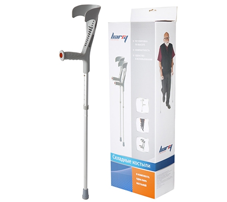 Костыль с опорой под локоть в сером цвете. Складной механизм костылей позволяет хранить их в любом месте. Просто потяните часть костыля и сложите его. 1 пара костылей 10073 в розничной коробке.