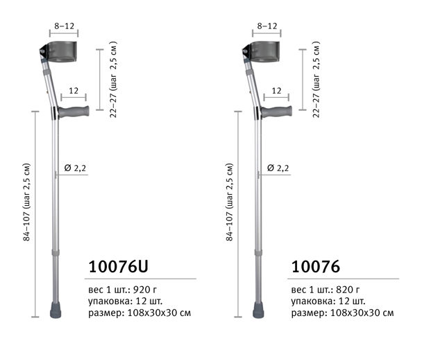 Облегченный и удобный костыль с опорой под локоть обеспечивает максимальный комфорт при опоре и передвижении. Рукоять равномерно распределяет нагрузку на руку, что позволяет пациенту больше двигаться и меньше при этом уставать.