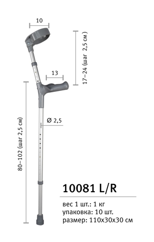 Костыль с подлокотной опорой 10081L "с анатомической ручкой (левая)"