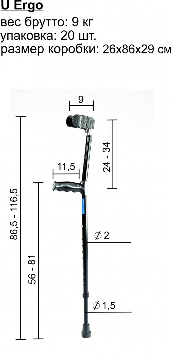 Облегченный и удобный костыль с опорой под локоть обеспечивает максимальный комфорт при опоре и передвижении. Рукоять равномерно распределяет нагрузку на руку, что позволяет пациенту больше двигаться и мен