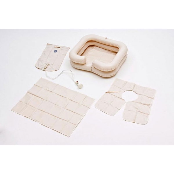 Удобно использовать при мытье головы лежачему больному, пожилому (престарелому) человеку. Обязательный атрибут ухода за лежачими и престарелыми пациентами - надувная ванночка-подголовник для мытья головы в постели.