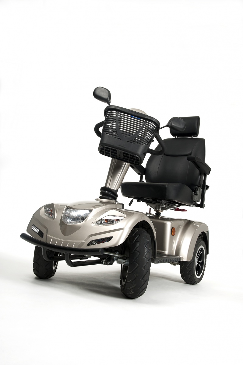 Скутер для инвалидов Carpo 2 - мощная и комфортная четырехколесная модель. Предназначен для использования на улице, с полным удовольствием от вождения. Пробег на одной подзарядке возможен на 30-60 км со скоростью 10-15-18 км/ч. Это электронно-программируемая модель. Электронный дисплей управления находится на рулевой колонке, отвечая за необходимые функции. На нем отразятся, например, такие необходимые индикаторы, как состояние батареи и скорости. В дороге будет подспорьем переднее и заднее освещение. Для покупок и личных вещей есть прочная корзина. Максимальная грузоподъемность - 150 кг.