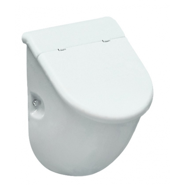 Керамический домашний писсуар со скрытым подводом воды. Горизонтальный выпуск. Поверхность: белая. С крышкой из дюропласта(9414.1.000.000). Поверхность крышки: белая.