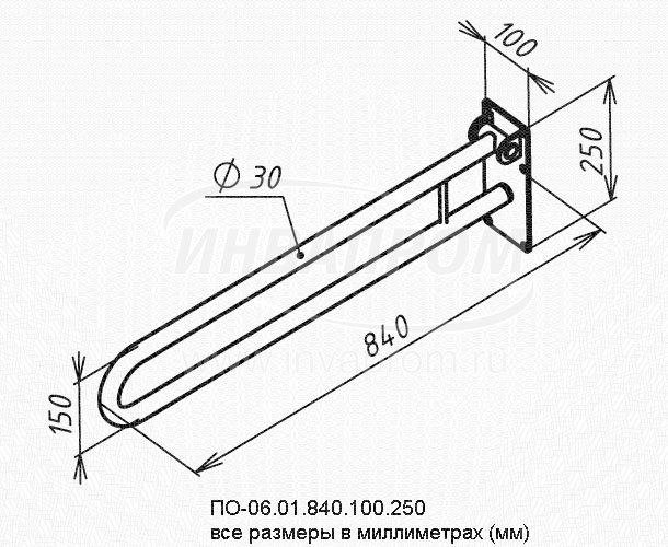Поручень для инвалидов откидной ПО-06.01.840.100.250