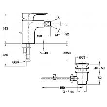 однорычажный смеситель для биде стандартной высоты на одно отверстие;