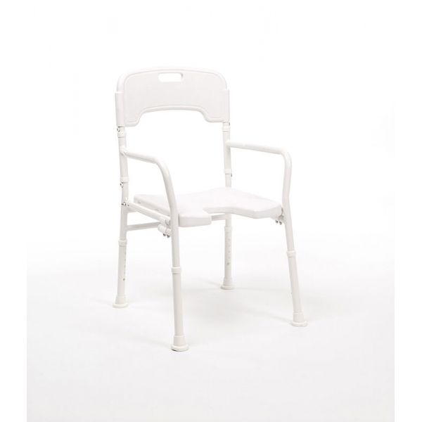 Складной стульчик Vermeiren Laly относится к санитарно-гигиеническому оборудованию. Данная модель используется в ванных комнатах, душевых кабинках и других влажных помещениях. Стульчик имеет складную конструкцию, легко убирается после использования. Сиденье стульчика Laly оснащено специальным анти-скользящим покрытием, что обеспечивает дополнительную безопасность для пользователя. Дополнительный комфорт пользователю обеспечивает наличие спинки. Сиденье с гигиеническим вырезом позволяет пользователю комфортно осуществлять гигиенический уход. Ножки стульчика регулируются по высоте с помощью нажатия на кнопки-защелки. Функция регулировки ножек по высоте позволяет человеку с ограниченными возможностями осуществлять более легкую пересадку с кресла-коляски на сиденье стульчика.