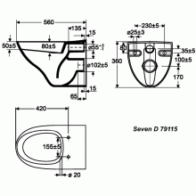 Унитаз Ido SevenD ( Севен Ди ) подвесной 79115, возможна комплектация сиденьем с плавным опусканием крышки (76115), для установки на инсталляцию (заказывается отдельно). В комплект к унитазу входит жесткая крышка с металлическими креплениями.